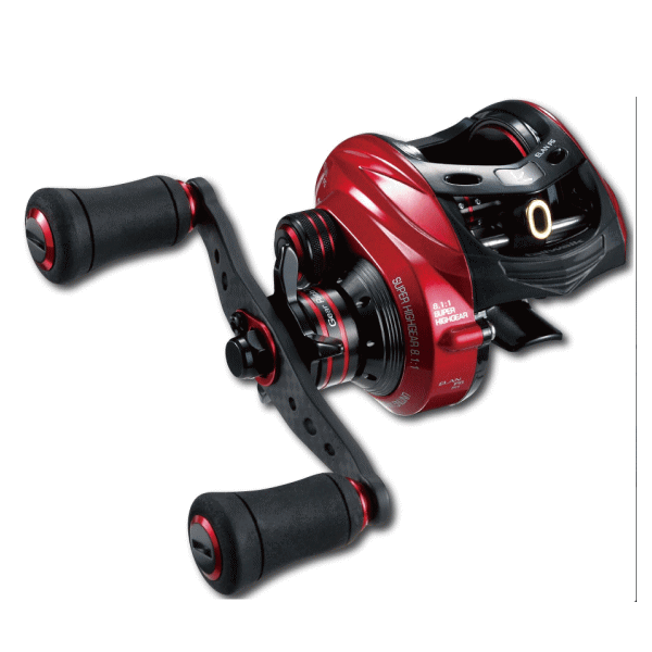 エランはバスをメインターゲットとしたリールで、ギア比7.3と6.6の2タイプがあります。遠心ブレーキとマグネットブレーキのツインブレーキ装備でバックラッシュしにくく、初心者にも使いやすいです。